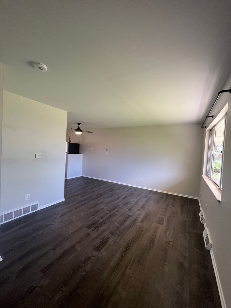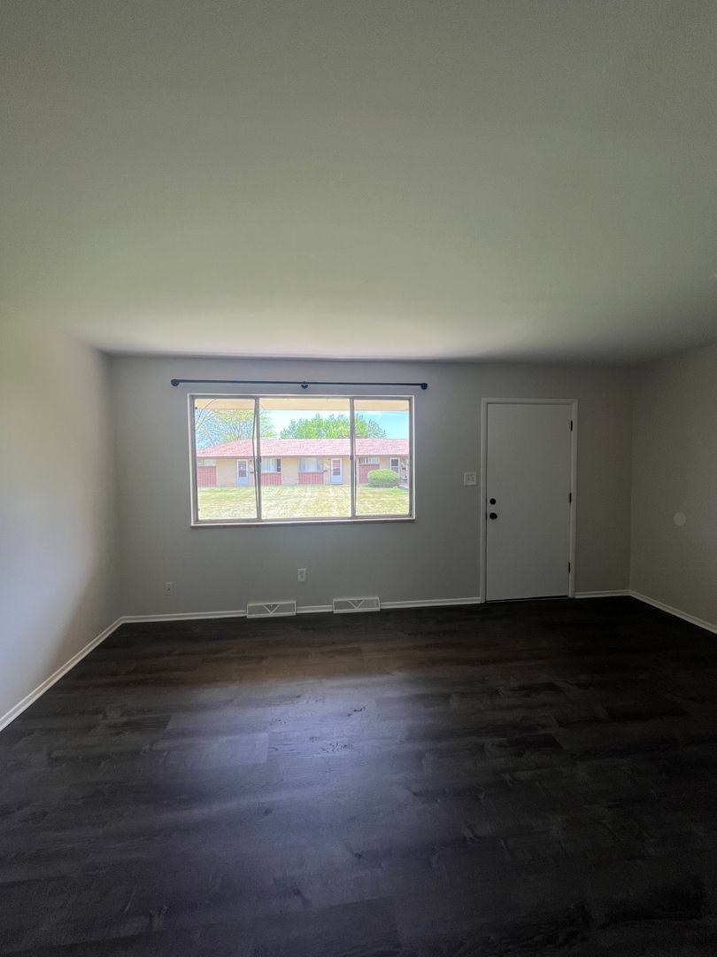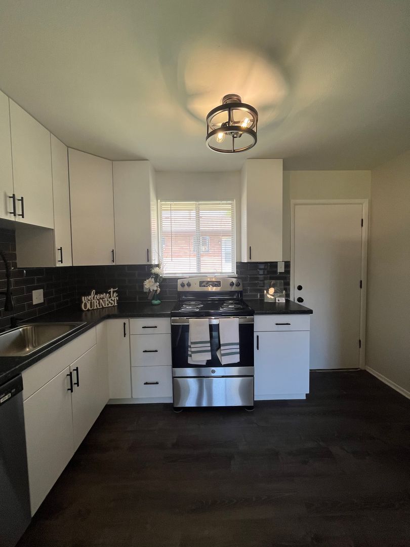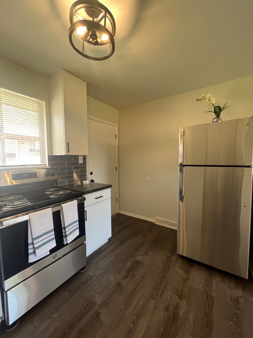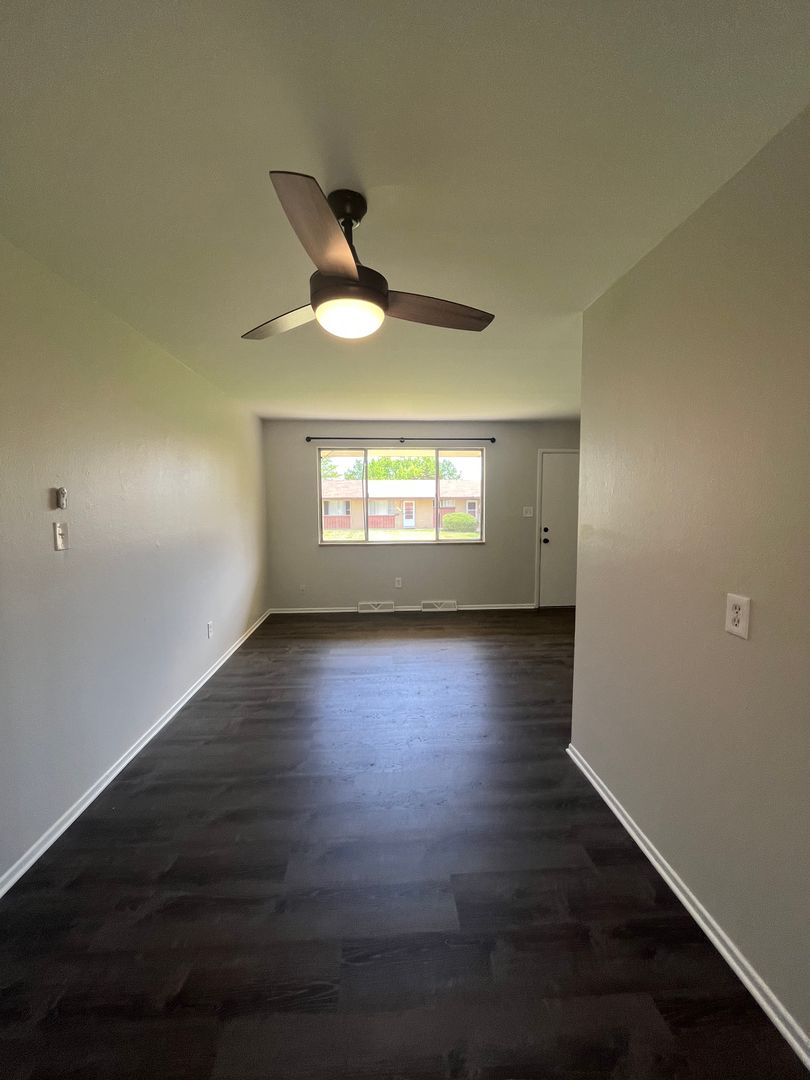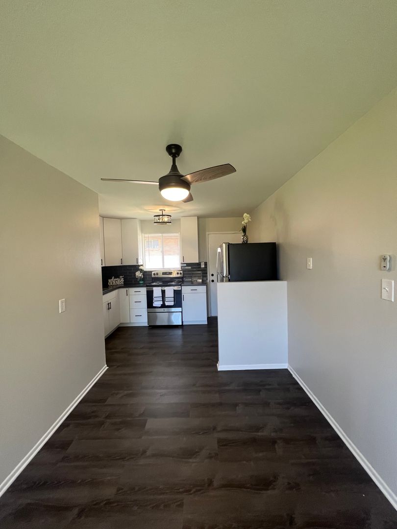 Newly remodeled! There is a large living room with dining area and hardwood floors. The kitchen has been completely renovated with brand new cabinets, counter tops, and stainless steel appliances! The two bedrooms both have new carpet and ceiling fans. The bathroom has been updated with new lighting and vanity. Washer and dryer hook-ups. The exterior of the property has plenty of off street parking and a huge grass yard to enjoy!