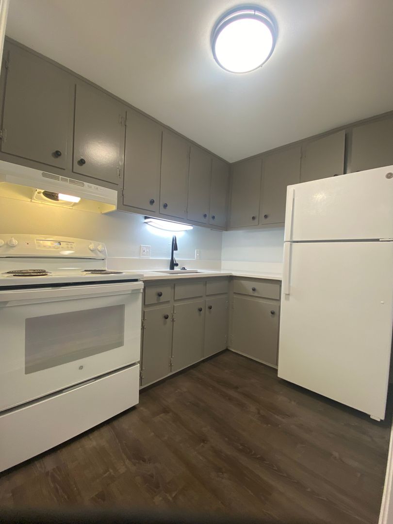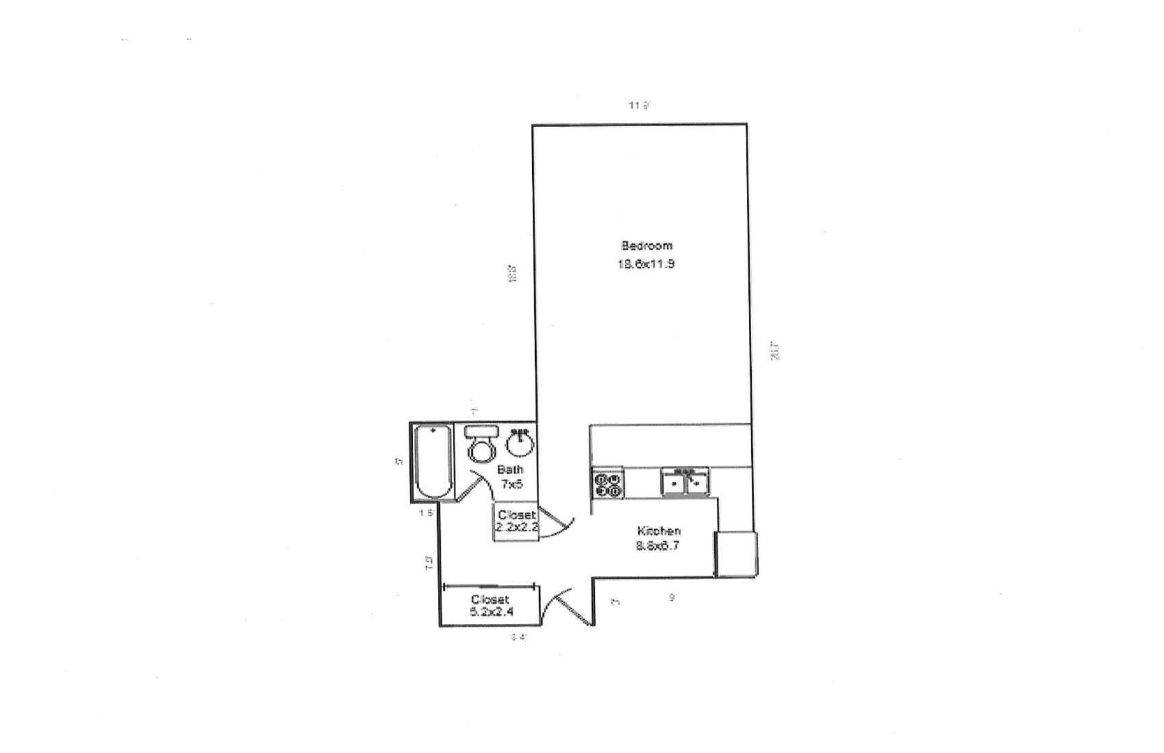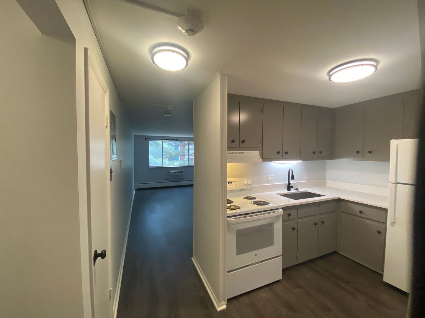 This 1st floor studio apartment is part of a 24-unit multi-family complex known as Golden Plaza. Features a living room, dining area, kitchen with range, refrigerator, and single bathroom. Convenient on-site app-operated laundry and off-street parking lot.